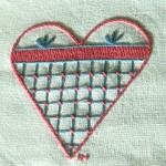 Hjärtat är en vanlig symbol i hallandssömmen – ett roligt och enkelt broderi att börja. I filmerna visas hur stygnen broderas. |